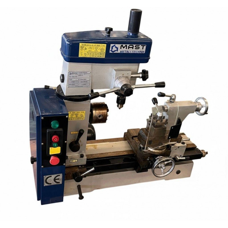 Токарно-фрезерний верстат MAST Metalltechnik M-TF 400 - це універсальне металообробне обладнання, яке поєднує функції токарної обробки, фрезерування і свердління. Діаметр обробки над станиною становить 400 мм, відстань між центрами - 400 мм. Максимальний діаметр свердління - 15 мм. Потужність двигуна 0,55 кВт достатня для обробки невеликих і середніх заготовок зі сталі та кольорових металів. Живлення від стандартної електромережі 230 В.