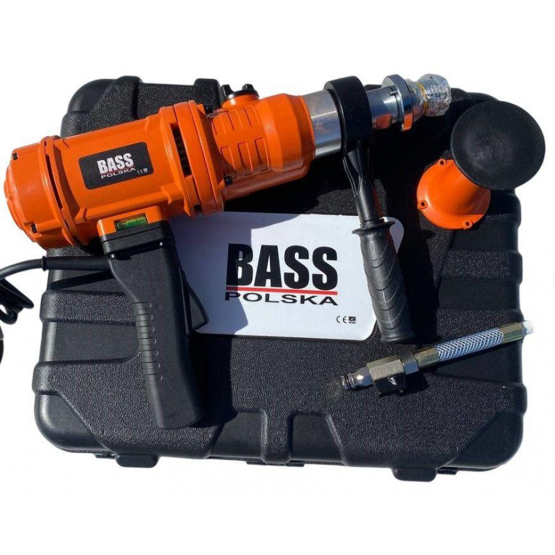 На інструмент встановлений двигун потужністю 1,8 кВт з живленням від електромережі 220 В. Редуктор у масляній ванні забезпечує тривалу і продуктивну роботу. Вбудована муфта розщеплення вмикається при заклинюванні колонок, захищаючи обладнання від пошкоджень. Є диференційний захист для убезпечення оператора від ураження струмом. Дана установка може використовуватися у ручному режимі та встановлюватися на станину (як додаткова опція). На ви можете купити дриль по бетону Bass Polska 7751 за вигідною ціною, так як ми поставляємо обладнання напряму від виробника.
