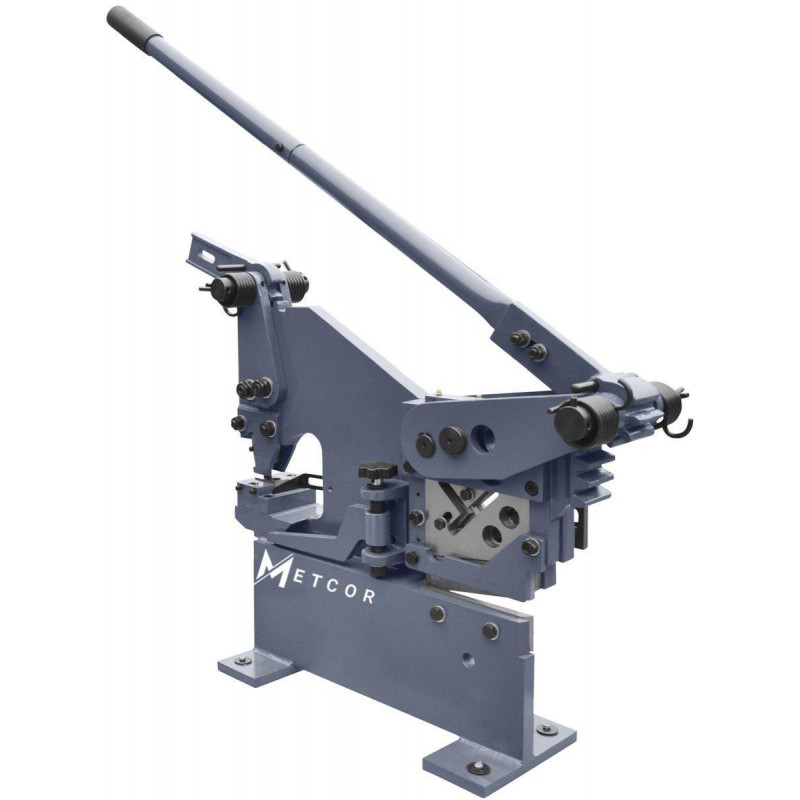Комбіновані гільйотинні ножиці METCOR PBS9 - це ефективне універсальне обладнання для різання листової сталі, прутка, смуги та кутника. Максимальна товщина листа, з якою може працювати верстат, становить 8 мм, діаметр круглого прутка - 22 мм, квадратного прутка - 20 мм. Максимальний розмір смуги - 90х14 мм, кутника - 60х7 мм. Також модель METCOR PBS9 має функцію пробивання отворів діаметром до 20 мм у листовій сталі товщиною до 5 мм.