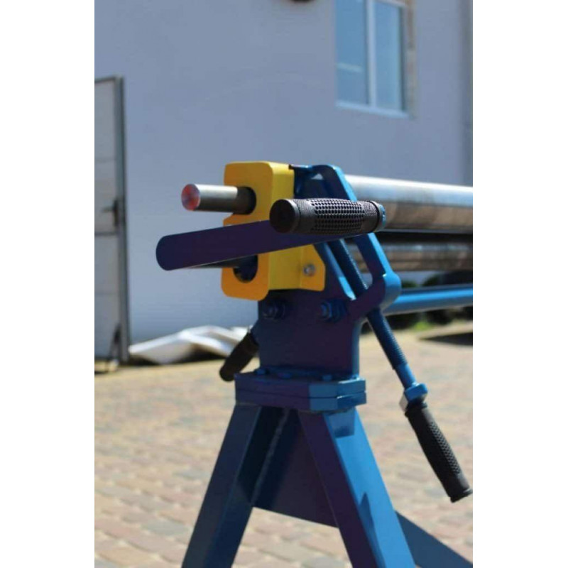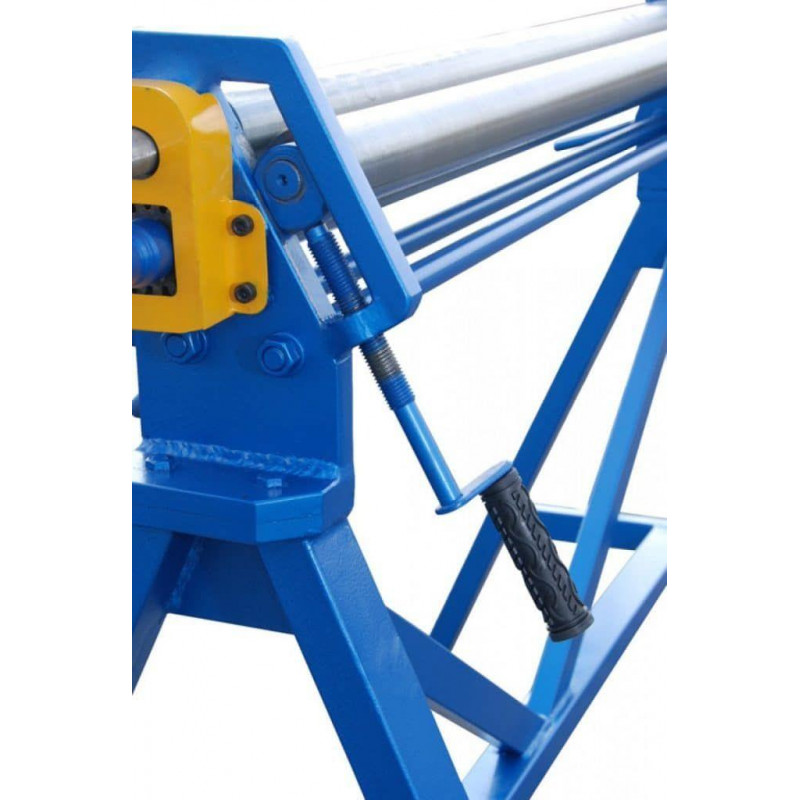 Верстат має три валки діаметром 60 мм з гладкою, полірованою поверхнею. Два нижні вали приводні, а верхній - притискний. Верхній вал регулюється по висоті для зміни радіуса згину і знімний з однієї сторони для легкого зняття заготовки. Управління згинанням здійснюється шляхом обертання важеля. Ручний привід дозволяє максимально контролювати процес обробки, а проста експлуатація і незалежність від зовнішніх джерел живлення роблять це обладнання надзвичайно зручним і практичним. Ручний вальцювальний верстат Prod-masz ZW 1300/0,8 буде ідеальним варіантом для невеликих виробництв і майстерень.