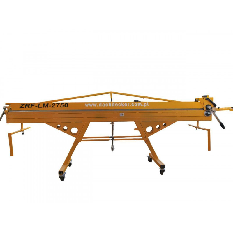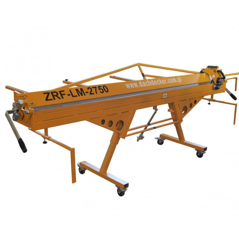 Листозгинальний верстат Dachdecker ZRF-LM-2750/0.8 призначений для ручного згинання листової сталі товщиною до 0,8 мм та алюмінію і міді товщиною до 1 мм під кутом до 155°. Робоча ширина 2750 мм та необмежена глибина подачі дозволяють працювати з досить великими листами. Оснащений роликовим ножем з високолегованої сталі, який дає змогу різати матеріал по всій ширині або створювати надрізи.
