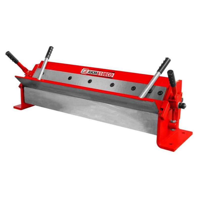 Листозгинальний верстат Holzmann AKM610ECO - це компактне ручне обладнання для згинання листового металу товщиною до 1 мм та з шириною листа до 600 мм. Максимальний кут згину становить 135°. Згинальна балка оснащена шістьма знімними сегментами розміром 25 мм, 50 мм, 76 мм, 203 мм та 254 мм, що дозволяє регулювати довжину згину і виконувати згинання листа з чотирьох сторін. Завдяки цьому верстат відмінно підходить для виготовлення невеликих коробів, піддонів, елементів вентиляційних систем й інших металовиробів.
