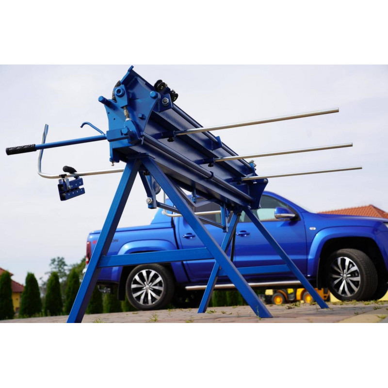 Для точного виставлення кута згину верстат оснащений градусною шкалою, а для точного згинання заготовки під заданим кутом є вбудований кутомір. Глибина подачі листа необмежена. Для підтримки листів у задній частині верстата є упори. Цей листозгин 1,2 мм опційно може укомплектовуватися роликовим ножем і доварювальником.