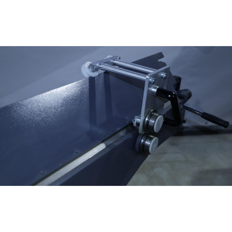 • Напрямляючий вертикальний вузол переміщення притискної балки дозволяє фіксувати лист з сильнішим зусиллям-притиском по всій довжині верстата.