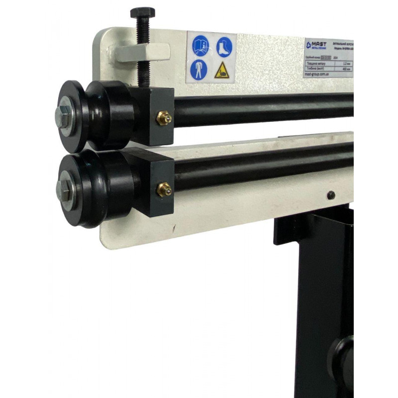 Зигувальний верстат MAST Metalltechnik M-EFRM18S - це ручне обладнання для обробки листового металу товщиною до 1,2 мм, що використовується при виготовленні елементів повітроводів, водостоків та для інших операцій, пов’язаних зі з’єднуванням елементів і відбортовуванням металу. Поставляється з 6 комплектами стандартних роликів для згинання, відбортовування і формування кромок. Робоча глибина - 490 мм, відстань між роликами - 50 мм.