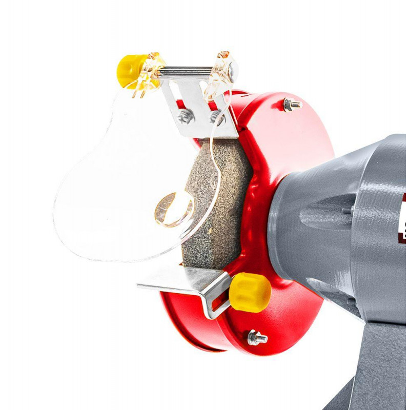 Литий чавунний корпус, виконаний у промисловому дизайні, мінімізує вібрації і підтримує стабільність робочого процесу. Захисний екран з плексигласу з функцією лупи убезпечує оператора від іскор і викиду стружки, забезпечуючи оптимальну видимість робочої зони. Для зручності фіксації заготовок є регульовані опорні підставки. Цей дводисковий шліфувальний верстат буде ефективним як у власному гаражі, так і у невеликій майстерні.
