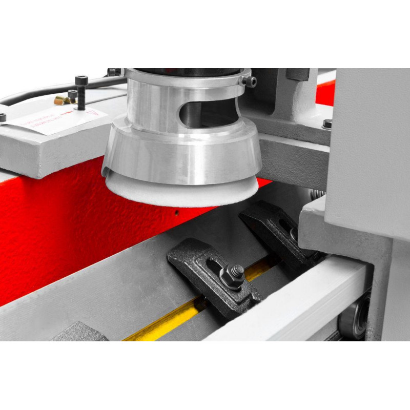 Верстат оснащений трифазним електродвигуном потужністю 1,5 кВт, який забезпечує високу продуктивність роботи і ефективне заточування лез з різних матеріалів. Ножі надійно фіксуються у верстаті за допомогою якісних тримачів. Система водяного охолодження запобігає перегріву лез і покращує якість обробки. Масивна, жорстка станина гасить вібрації, забезпечуючи стабільність і точність роботи. Процес заточування повністю автоматизований, що виключає ризик похибки. Цей верстат для заточування стругальних ножів відмінно підійде для підтримки належного стану інструменту на столярних і меблевих виробництвах.