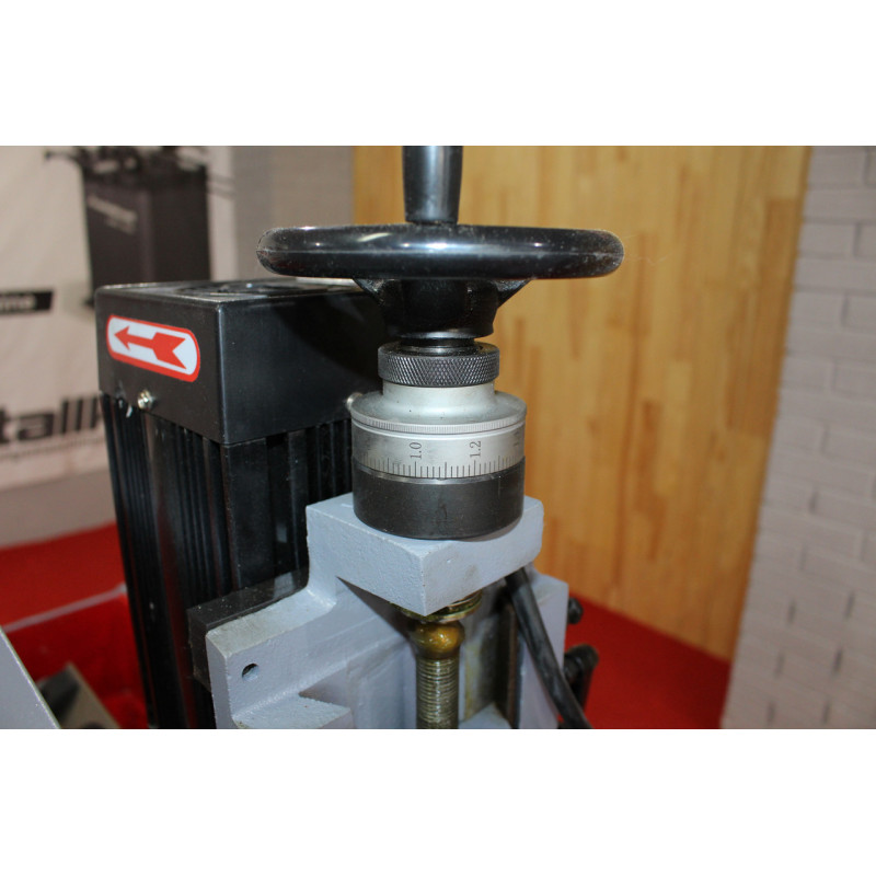 НАЛАГОДЖЕННЯ ЗНІМАННЯ Опускання шліфувального круга проводиться у вигляді передачі гвинт-гайка. Контроль за величиною опускання здійснюється цифровим індикатором. Двигун заточувального вузла має потужність 1,5 кВт, що дозволяє заточувати ножі з великим зніманням. | ||