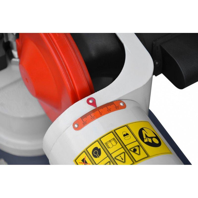 Поворот тримача на 45° праворуч і на 30° ліворуч дозволяє заточувати зубці з різним нахилом ріжучої кромки і симетрично шліфувати обидві грані зуба без переміщення заготовки, а нахил круга на 20° в обидві сторони - отримати оптимальний ріжучий кут для різних матеріалів і форм зуба. Цей заточувальний верстат для пилок і фрез оснащений двигуном потужністю 250 Вт, який забезпечує стабільну і рівномірну швидкість обертання, що важливо для якісного шліфування зубів.