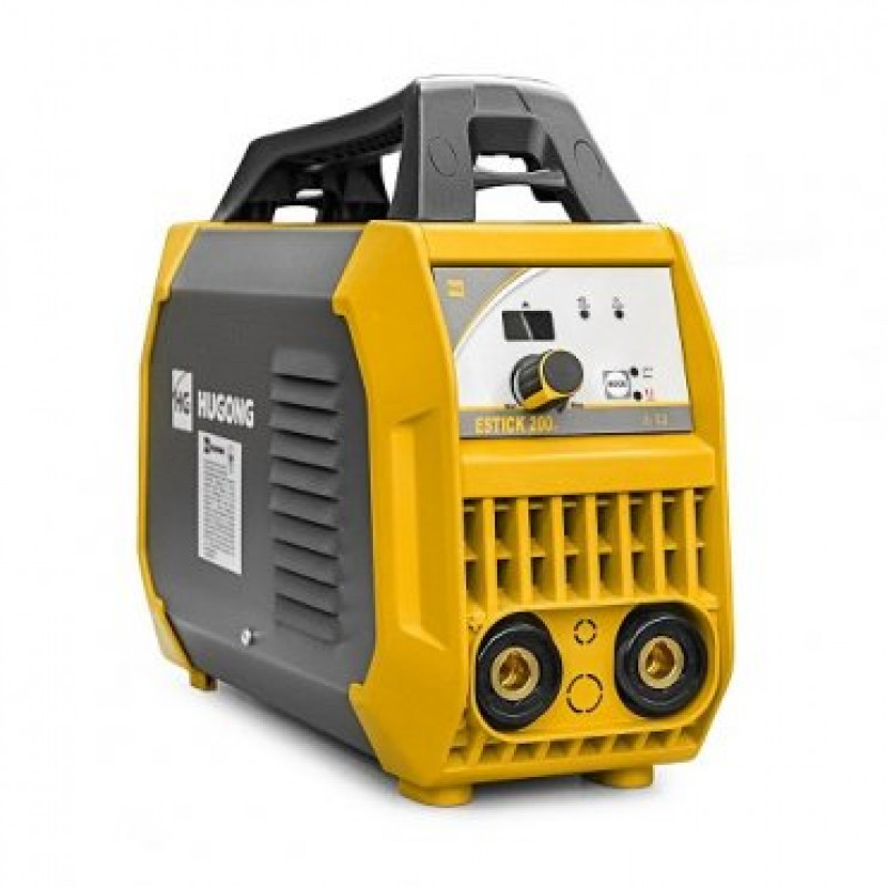 Зварювальний інвертор Hugong Estick 200 III для ручного дугового зварювання і наплавлення покритим електродом ММА на постійному струмі DC виробів із чавуну, маловуглецевої і середньовуглицевої, хромової, марганцевистої, легованої сталі, кольорових металів, а також аргонодугового зварювання неплавким електродом в середовищі аргону TIG на постійному струмі DC всіх типів сталі, крім алюмінію і його сплавів.